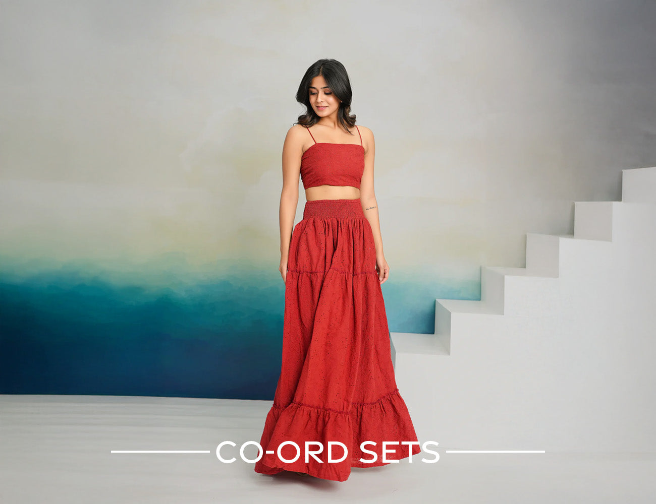 Brick Red Shiffli Coord Set